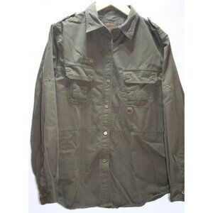 LRL Ralph Lauren Women L Military Style Utility Shirt Olive Green Safari Grunge