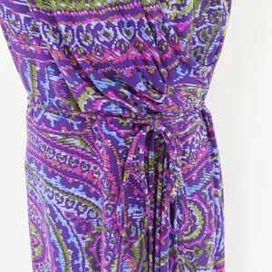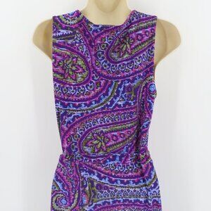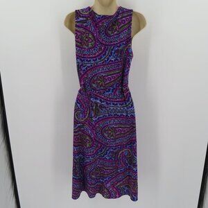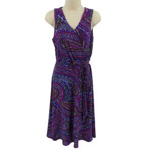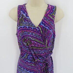 LRL Ralph Lauren Women Small Purple Green Blue Scroll V Neck Sleeveless Dress