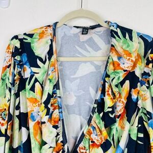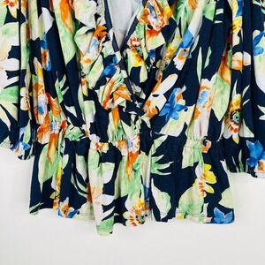 LRL Ralph Lauren Womens Faux Wrap Floral Print Shirt Tropical Stretch Size 1X