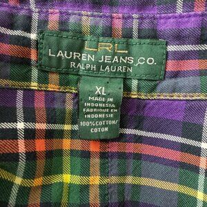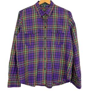 LRL Ralph Lauren Women's Plaid Button-Up Shirt Sz XL Flannel Long Sleeve Purple