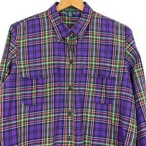 LRL Lauren Jeans Co. Ralph Lauren Women's Plaid Button-Up Shirt Flannel Long Sleeve Purple