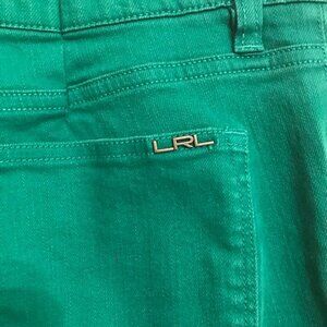 These LRL Ralph Lauren Modern Slimming Jeans feature classic 5 pocket styling with a zip/button closure. Color: Grass Green. Designed to hit at the ankle. Mid-Rise. Excellent Pre-Owned Condition.
