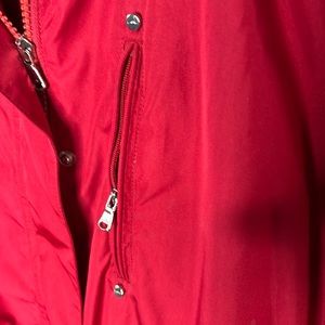 3 front pockets, one zippered pocket and two flap pockets with snaps