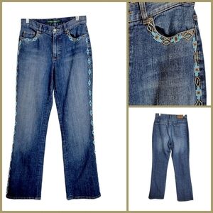 LRL Southwestern Blue Beaded Bootcut Jeans