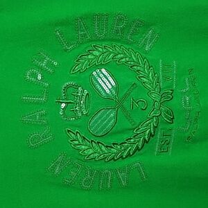 LRL Sport True Green Clear Sequins tone on tone Embroidered Logo Breathable 100% Cotton Tee Shirt Top