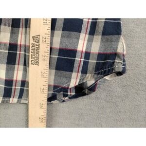 LRL Womens Shirt M Blue Plaid Flannel Button Up Ruffle Neck Academia Preppy
