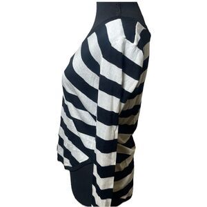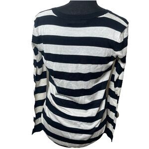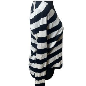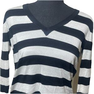 LRL Women’s Sweater PXS Black White Stripe V-Neck Lightweight Knit Petite