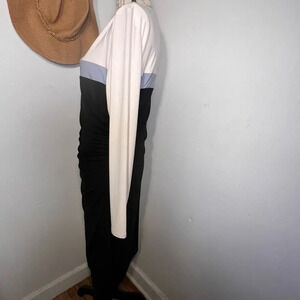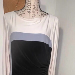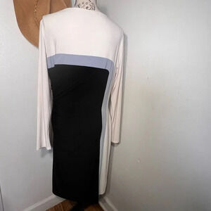 Lauren Ralph Lauren, 16,color block cinched waist long sleeve, lined, slouch neckline heavy Ponte midi career sheath dress . Transfer mark on inside lining near tag, see pic