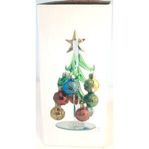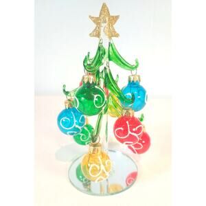 Beautiful Crystal tree with star and mirrored base. 12 removable ornaments in 4 different colors
