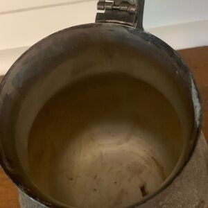This teapot has not been shined or cleaned. Elegant black teapot with an ornate handle and spout. Perfect for adding a touch of vintage charm to your kitchen.