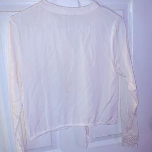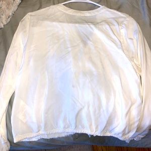 L/S White Lace Front Top. Size X-Small. Worn twice. Crop fit. Great condition but very small stain on back that is probably removable.