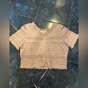 Lilac lace top size small - see photos light blue stain on back right shoulder area. NEW without tags