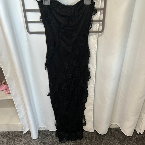 This elegant black evening dress is perfect for any formal occasion. Its sleek design and classic color make it a versatile addition to your wardrobe. *not love shack fancy brand*