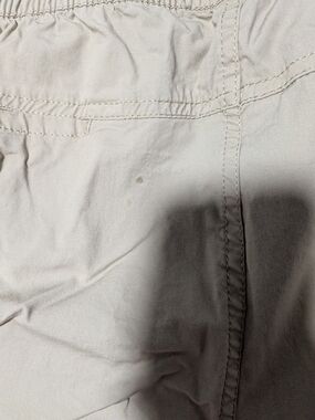never worn only tried on. there is a small grease spot on the left butt cheek. there is a picture attached