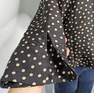 LSL black brown polka dot 2/3 sleeve button up silk shirt L