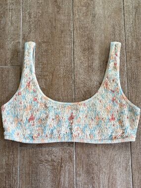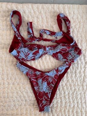 Self: 95% poly, 5% spandex. Lining: 83% nylon, 17% spandex. Made in China. Hand wash. Unpadded. Back tie closure. Adjustable shoulder straps. Item not sold as set. Revolve Style No. LSPA-WX1612. Manufacturer Style No. PIBTT22.