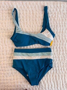L*SPACE Brittany Top Lennox Bottom Classic Bikini Electric Pique Stripe XL NEW