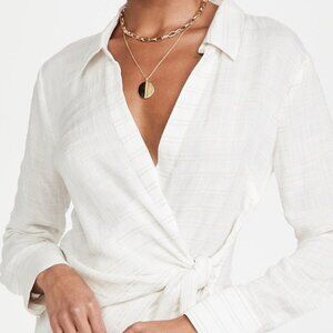 LSPACE Daydream Tunic in Cream long sleeve mini wrap around tie dress