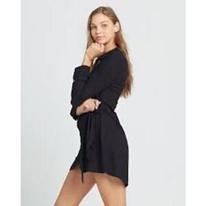 L*SPACE Daydream Wrap Mini Shirt Dress Medium / M Black