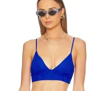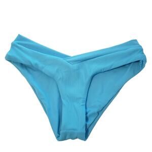 L*SPACE Eco Chic Desi Classic Bikini Bottom Sky Blue Ribbed High Waist XS NEW