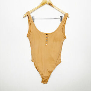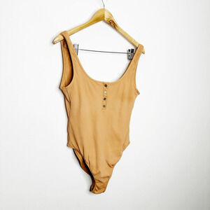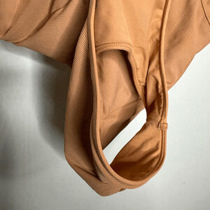 L*SPACE Float On One Piece Swimsuit Tan ribbed scoop neck womens US 10