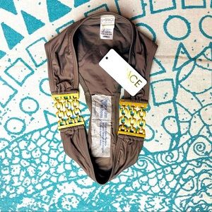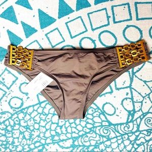 L*SPACE Jet Setter Gold Chain Side Hipster Bikini Bottom in Taupe Size Small