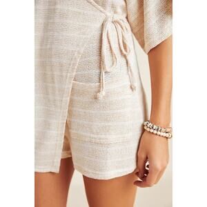 L*SPACE Kimono Romper Beige White Stripe Knit Wrap Cover Up Size XS/Small