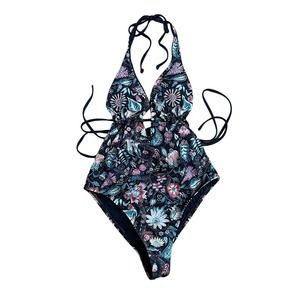 LSPACE Liberty Floracopa Pamela One Piece Swimsuit Size 6 Floral Plunge Halter