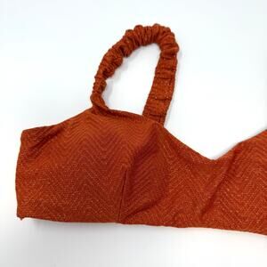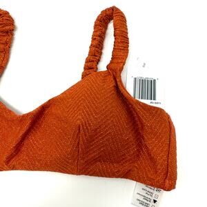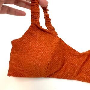 L*SPACE Shimmer Orange Lloyd Ruched Strap Bikini Top Size Small New