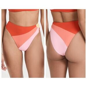 A striking sunburst pattern in a bold range of colors draws the eye to these high-rise L*Space bikini bottoms.