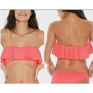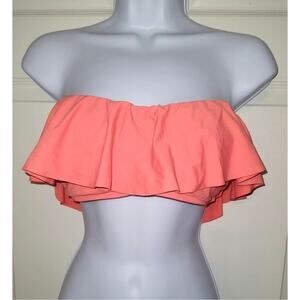 L*SPACE Lynn Coral Pink Strapless Bandeau Style Ruffle Flounce Bikini Top Size L