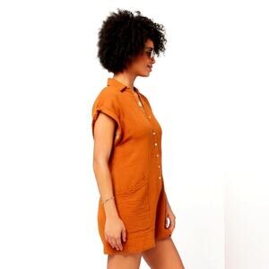 Play all day in the Mika Romper, a cute little shorts romper crafted from breezy fabric. Features a functional button down front with pockets and rolled hem sleeves.