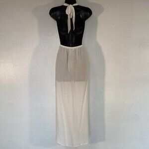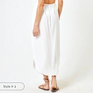 The Marina Cover-Up is a midi length dress that was made for a relaxing day in the sun. A halter tie neck allows you to adjust the fit while the deep-v front and cut outs on both sides allow your skin to breathe when the weather starts to heat up.