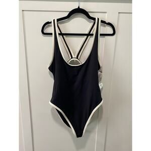 NWT chic one piece with white piping at seam and built-in shelf bra. Hygenic liner still attached.
