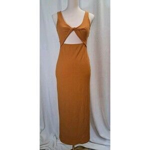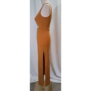 L*SPACE Scoop Neck Twist Front Rust Orange Side Slit Maxi Dress Rib Knit Size M