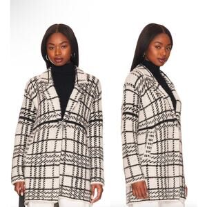 L*SPACE Stirling Sweater Coat in Plaid Ivory Black Women’s XL Cozy Quiet Luxury