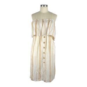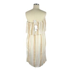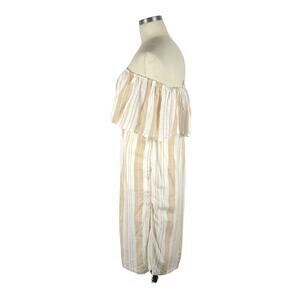 L*SPACE Strapless Dress Cream White Striped Off Shoulder Midi Dress S Daydreamer