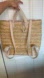 L*SPACE straw backpack with adjustable back straps. It has a lined interior with draw cord strings to secure items. Exterior straps hold towels or yoga mats.