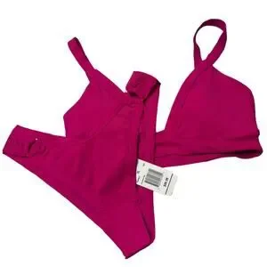 L*SPACE Vera Top Anna Bottom Bitsy Bikini Set Bougainvillea Ribbed XL NEW