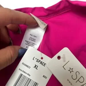 Get ready to turn heads with this vibrant L*SPACE Vera Top and Anna Bottom bikini set in the beautiful Bougainvillea ribbed fabric! This set is brand new with tags attached, ensuring perfect condition.