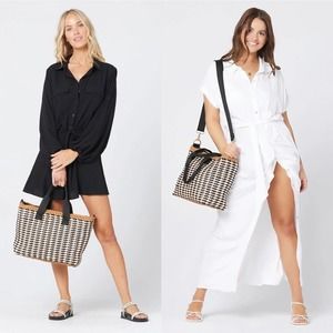 L*SPACE Voyager Cooler Bag in Black & White Woven NWT