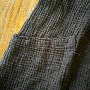 The LSPACE Mika Romper is crafted from 100% cotton gauze fabric. It features a front button closure, side slant pockets, and an adjustable button tab waist.