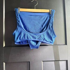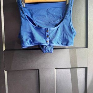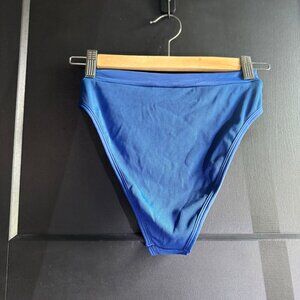 Get ready for summer with this stunning royal blue two-piece bathing suit in size M! This stylish suit features high-waisted bottoms made from ribbed material, ensuring both comfort and a flattering fit.