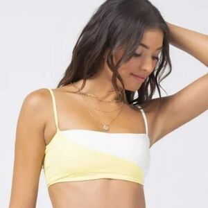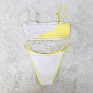L*SPACE Ari Bikini Top Tommy String Bikini Bottom White Yellow XS Small New