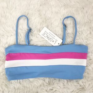 L*SPACE Rebel Blue Pink Striped Bandeau Bikini Top Size XS New