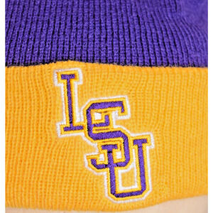 LSU Fighting Tigers Knit Cap with Pom-Pom Purple & Gold Embroidered Winter Hat