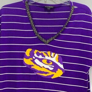 Womens LSU Tigers Game day Couture V Neck Graphic Striped Heavy Beading S Small.