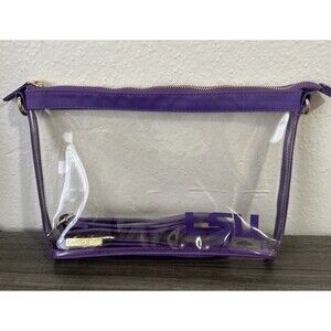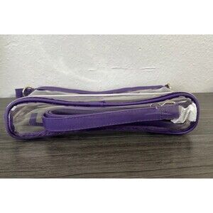 Clear LSU stadium bag with adjustable/removable purple strap. Unused. 11x7