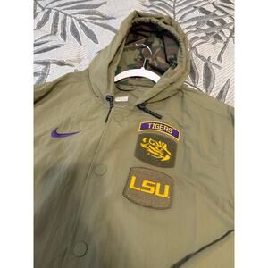 Official team-issued LSU Nike parka in Men’s XL. High-quality, heavy-duty material perfect for cold weather and showing your Tiger pride.