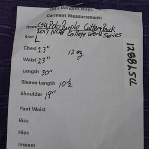 This LSU Polo is in very good pre-owned condition. It has no stains, holes or other blemishes. Please view the photos to see the condition details. Measurements are provided in the last photo.